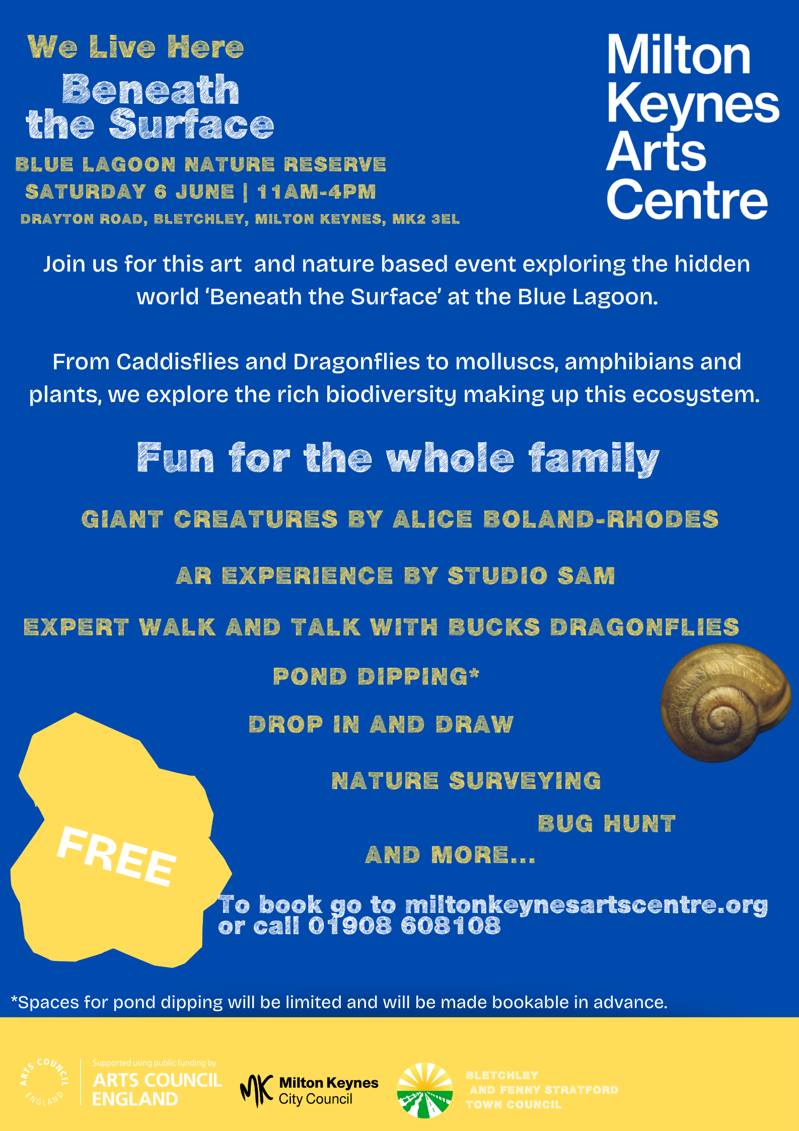We Live Here: Beneath the Surface - Blue Lagoon Saturday 6th June 11am-4pm Blue Lagoon Nature Reserve, Drayton Rd, Bletchley, Milton Keynes MK2 3EL